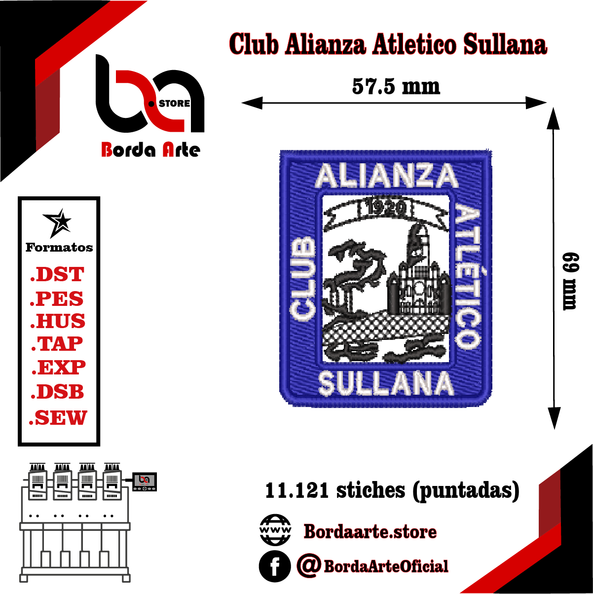 El diseño «Alianza Atlético Sullana» es un bordado digital que rinde homenaje al histórico club del norte peruano, símbolo de esfuerzo y pasión futbolera.